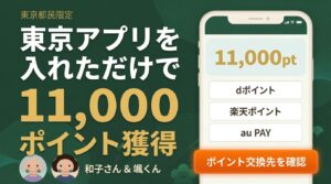 東京アプリ入れただけで11,000ポイント。お得じゃない!?(東京都限定)…